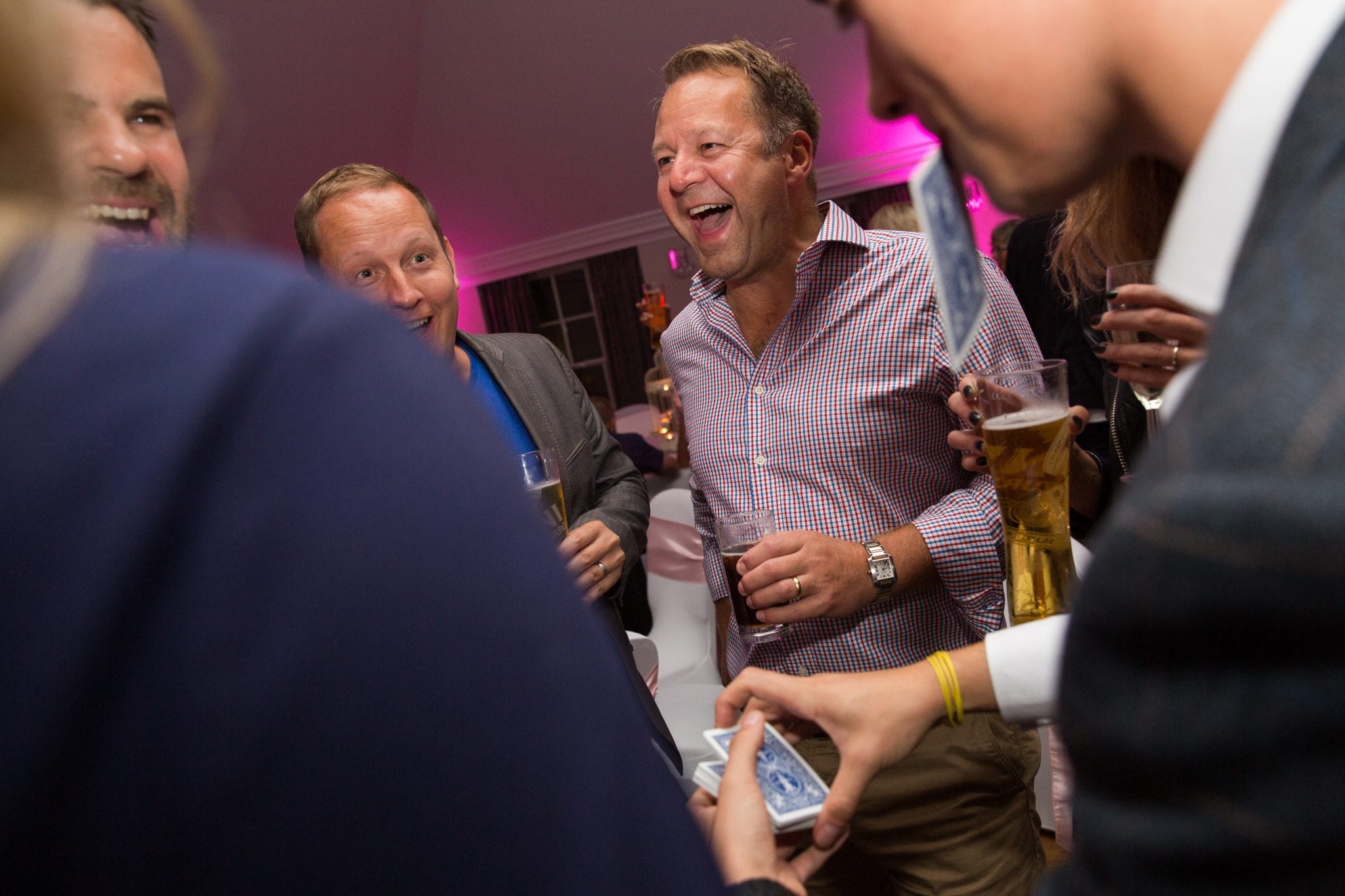 Award-winning wedding entertainer in Kettering, Jamie Docherty, mixes and mingles with guests during the quiet points, and provides the perfect icebreaker for guests on your special day!